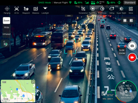 Basado en la tecnología de reconocimiento de IA de Autel, el Autel Alpha puede identificar y fijar automáticamente diferentes tipos de objetivos, como personas, embarcaciones o vehículos, mediante cámaras con zoom, gran angular o infrarrojas, proyectando la ubicación del objetivo en el mapa.
