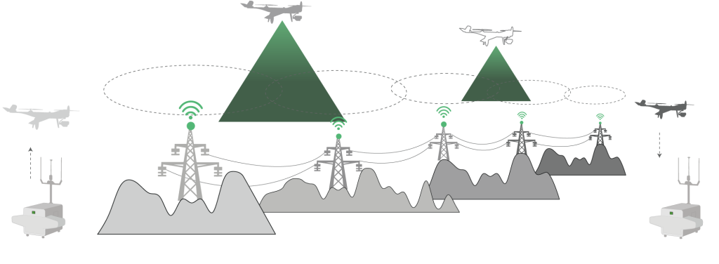 Se pueden conectar en red varios Nests para ampliar el alcance operativo y permitir despegues y aterrizajes remotos flexibles.